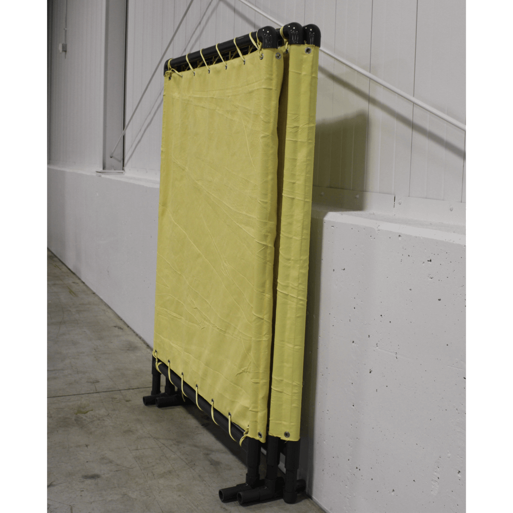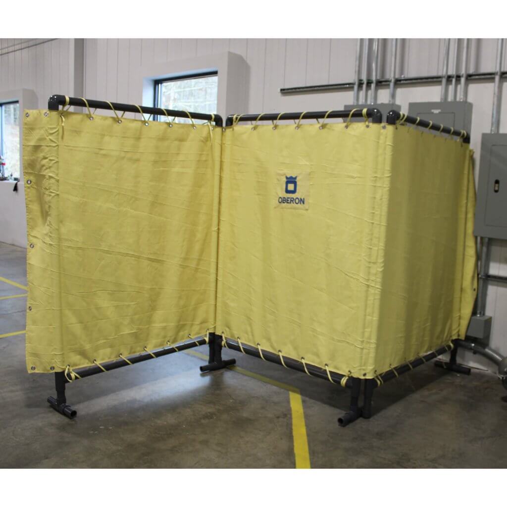 The Oberon Arc Flash Curtain Cube is designed to fold in on itself for easy storage.
